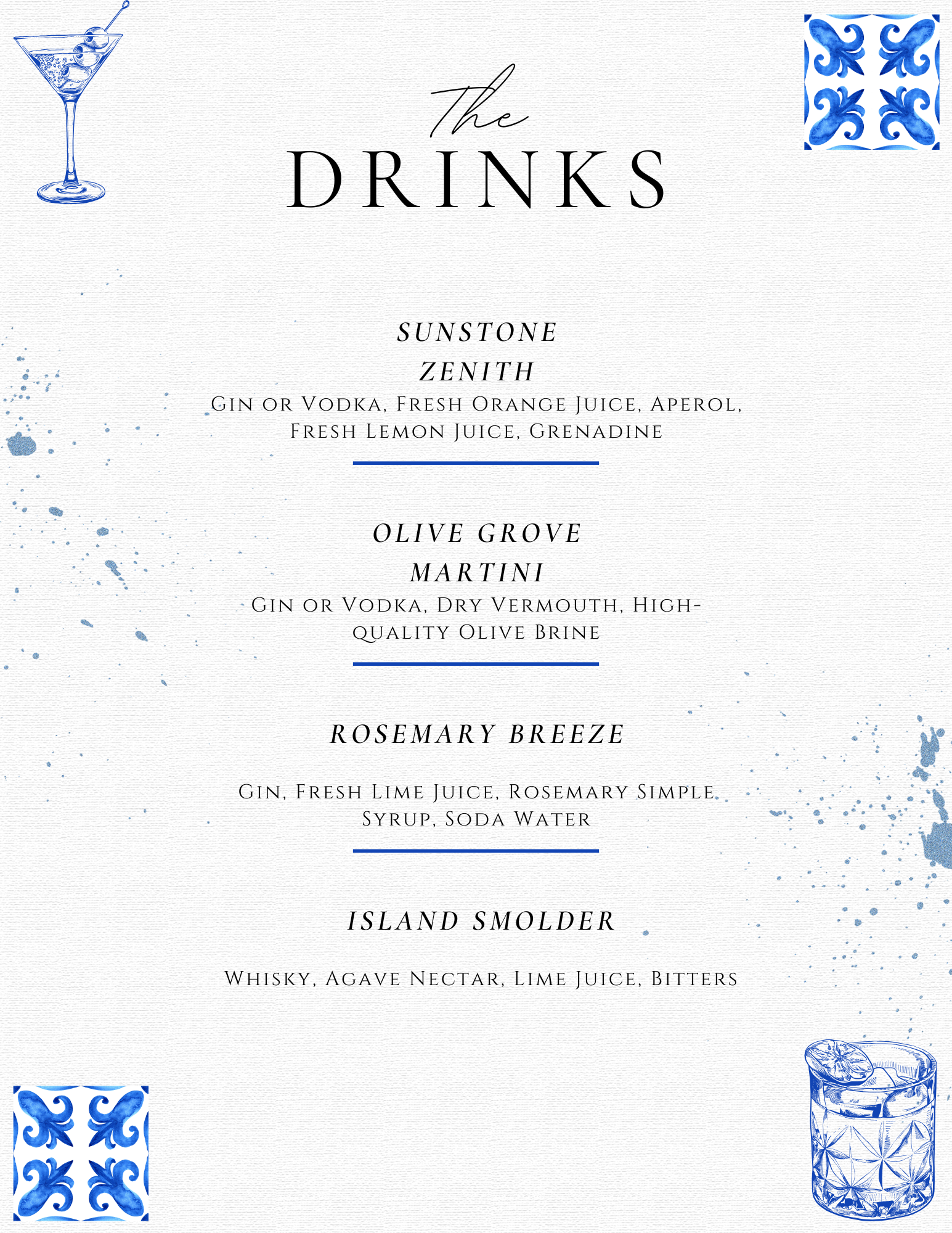 We believe that the perfect drink menu is a reflection of your event's unique "vibe." That's why we include a complimentary consultation to discuss your vision, guest preferences, and any specific themes or tastes you have in mind. During this consultation, we will collaborate with you to refine the sample menu above or create entirely new signature cocktails that are perfectly suited for your celebration.